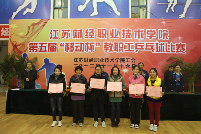 经过一天的激烈角逐,最终院领导队从15支参赛队伍中脱颖而出获得男子团体赛第一名,应用外语系分会、机关一队分获团体二、三名,会计系分会、后勤分会、经贸系分会位列四、五、六名。在男子团体赛和女子单打两个项目中机电系陈青云在女子单打决赛中夺得桂冠,基础部徐晓娟、殷俊芳分获二、三名,机电系边巍、会计系朱莉云、机电系马方琳位列四、五、六名。文法系分会、机关二队、基础部分会、粮工系分会、机电系分会、图文信息中心分会、计算机系分会、工管系分会、思政部分会等9个分会获得组织奖。闭幕式上,学院党委书记吴兆方,院长陈光曙,党委副书记刘芳,副院长蒋超五、戴光顺、程淮中为获奖队伍及选手颁奖。