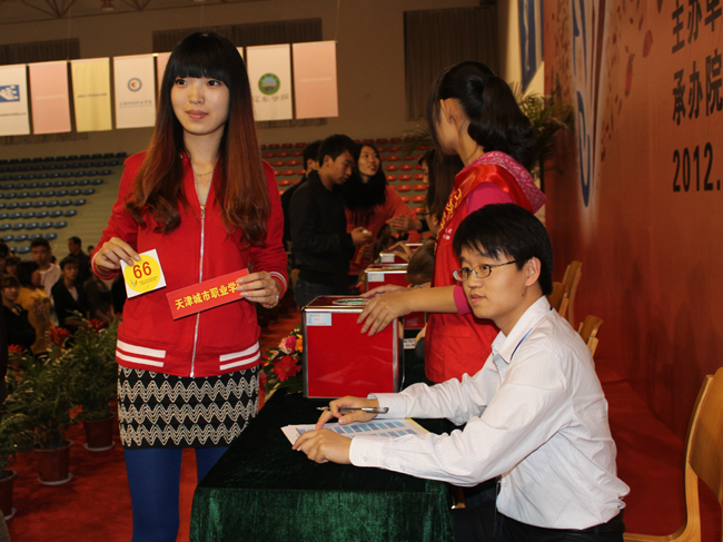 轻松自然地聊着天,威武洪亮地喊着口号,笑颜如花地拍照留念……没错,这就是第八届全国职业院校“用友杯”沙盘模拟经营大赛的准备现场。10月22日晚上7点,来自全国各地的71支参赛队伍在江苏财经职业技术学院训练馆参加本次大赛的抽签仪式。