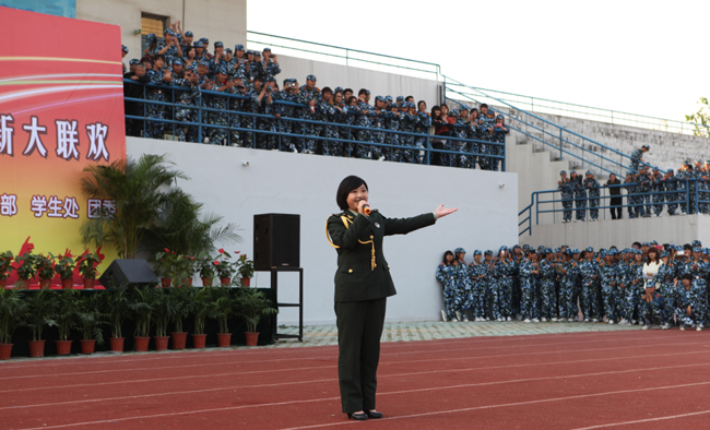 承训部队女兵鞠玮同志带来的《兵妹妹》和《绿旋风》,唱出了女兵静时如流水,唱时如风雷的气魄,唱出了女兵“忠诚爱部队,一生不后悔”的豪情壮志,在亮开嗓子开唱的一瞬间全场一片欢腾,操场的观众迅速从四周聚拢过来,成一个紧密的环形,呐喊声、尖叫声、掌声此次彼伏。两首精彩的歌曲演唱后,同学们仍意犹未尽地高呼着“再来一首”。在拉拉队的加油助威声中,工管、粮工等系的新生代表队依次上场,精彩演绎一首首耳熟能详的军营歌曲。承训部队两位官兵带来的压轴节目――小品《底气》,更是让场下笑声不断,掌声雷动。在优美的歌舞表演《春天的芭蕾》中,此次活动圆满落幕。