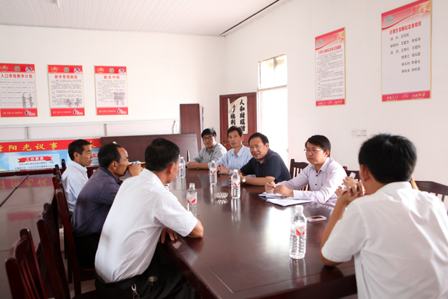 吴书记在涟城镇荷缘村党员活动室与该村党支部书记王风成等村干部亲切交谈: