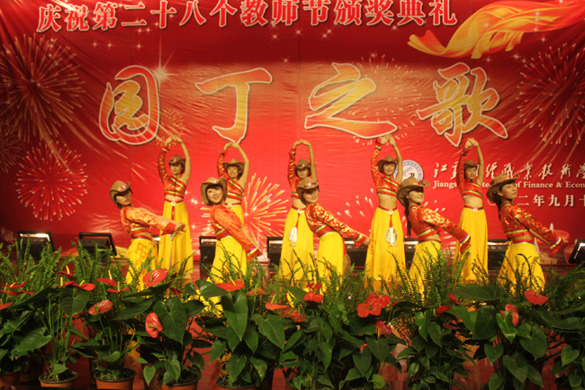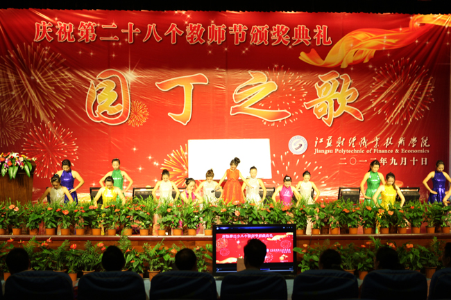 “让我们把臂膀和臂膀挽在一起,让我们把追求和梦想挽在一起我们的学院春意正浓,我们的学院阔步向前……”伴着屏幕上播放的反映学院建设与发展的短片,学生们激情地朗诵着《为了我们的飞翔》,感召着财院人振奋精神、团结拼搏、开拓创新,为建设江苏财经职业技术学院美好的明天再创新辉煌。伴着人文法律系邵佳老师带来的一曲轻快的《春天的芭蕾》,教师节颁奖典礼完美落幕。(党委宣传部供稿)