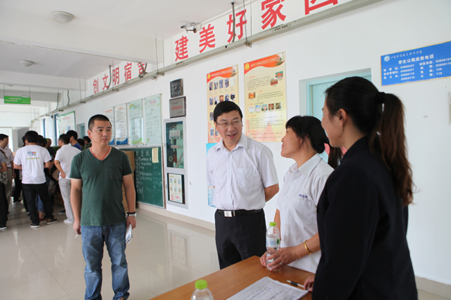 上午九时,院党委书记吴兆方,院长陈光曙,党委副书记刘芳,副院长戴光顺、蒋超五、程淮中等院领导专门到新生接待点巡视,确保迎新各项工作顺利进行。院领导在各接待点与新生及家长亲切交谈,勉励新生好好学习,积极上进,不断取得新的进步,不辜负家长和老师的期望,并关切慰问接待工作人员的工作情况以及新生报到情况,要求迎接点工作人员要认真细致地接待每位新生,热情、周到地帮助其办理入学手续。