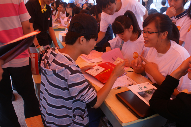 迎新现场,学院专门设有新生入学“绿色通道”。对于家庭经济困难新生,学院将为他们提供免费生活用品,办理助学贷款等,保证不让一个学生因为费用问题而入不了学。