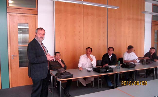 8月6日至8月19日,蒋超五副院长一行14人赴德国进行了为期两周的学习培训。在德国的学习考察主要采取学习培训与实地考察相结合方式进行。德国柏林应用科技大学的外事办公室主任保谢尔博士、柏林工业大学权忠宪教授、柏林经济和社会保险学校校长郎曼先生和两个教育部班主任、柏林AEG培训中心校长皮特先生等老师分别讲授了德国职业教育体系、“双元制”职教模式、德国的高等和中等职业教育情况,授课教师均具有丰富的教学和管理经验,通过多元化互动式启发式的教学方式进行授课,大家踊跃提问,互相交流,取得了较好的学习培训效果。