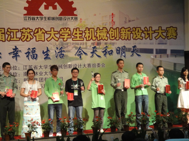 5月4日至6日,由江苏省教育厅主办的第四届江苏省大学生机械创新设计大赛在南京林业大学举行。本次大赛主题为“幸福生活――今天和明天”,内容为“休闲娱乐机械和家庭用机械的设计和制作”,来自东南大学、南京理工大学、南京林业大学近40所本科、高职院校900多名师生,共计154件作品参加比赛。经过三天的激烈角逐,我院机械与电子工程系苏如敏、李中成、陈露露等五位同学设计制作的“无动力垃圾清扫机”喜获大赛一等奖,周忠旺、何玉林两位老师获优秀指导教师。