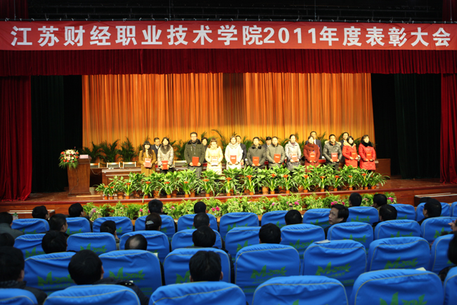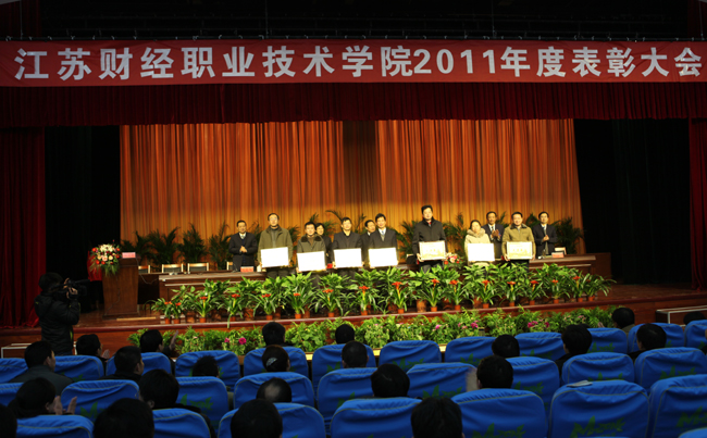 2月17日下午,在欢快的乐曲声中,党委书记吴兆方,院长陈光曙,党委副书记刘芳,副院长蒋超五、戴光顺、程淮中分别为学院2011年度目标考核先进集体代表和先进个人代表颁奖。