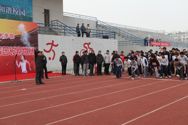 伴随着学生工作处处长刘其生为本次长跑比赛鸣枪起跑,比赛正式拉开了帷幕。田径场上,参赛选手们你追我赶、奋力向终点跑去,两旁的啦啦队员们也积极为选手们呐喊助威。整个比赛场面热火朝天,似乎驱赶走了冬天的寒意,把浓浓的春意带到了我们身边……经过激烈的角逐,计算机技术与艺术系获得本次长跑比赛第一名,会计系、经济贸易系分获第二、三名,工商管理系、人文法律系、机械与电子工程系分获第四、五、六名,体育工作部部长傅遐龄宣布了比赛结果。