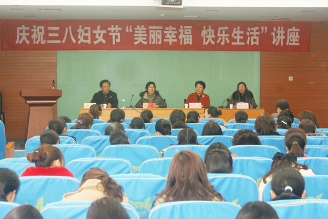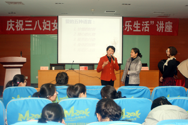 “这场迎‘三八妇女节’讲座,徐女士结合女老师日常生活,语言切合实际,动作诙谐,让我们很容易便学会了,也更加了解婚姻生活的真谛。”一位老师这样说。(宣传部、工会供稿)