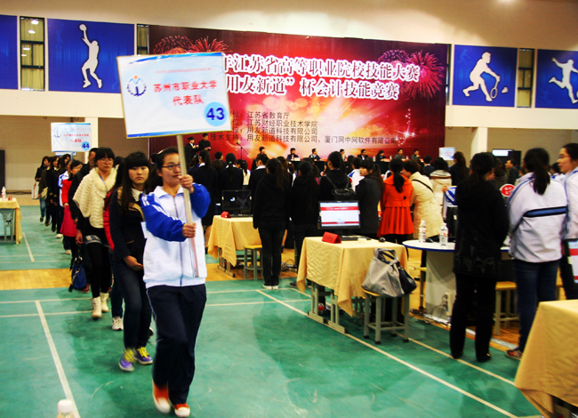 4月20日上午8时,由江苏省教育厅主办,北京用友新道科技有限公司、厦门网中网软件有限公司支持,江苏财经职业技术学院承办的2013年江苏省高等职业院校“用友新道杯”会计技能大赛,在我院训练馆拉开帷幕。