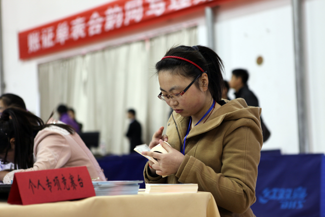 点钞、报表、汇总……参赛选手们的手指不停地在纸钞和数字键盘上跳跃着、滑动着,那般轻盈与熟练。20日上午8点45分,在江苏省会计技能竞赛会计手工比赛现场,来自全省的47支代表队188名“会计高手”在江苏财经职业技术学院训练馆展开了一场激烈的“较量”。