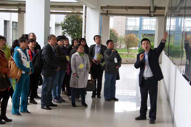随后,各校领队和老师跟随讲解员围绕“现代企业信息化管理体验中心”进行了一次“校企合作创建旅游”,从“大企业人才需求现状”、“共育‘Z’型人才”、“把企业搬进校园”到“虚拟商业社会进校园”,参观中“游客”们则更关心的是虚拟商业社会的流程——实训动员、岗位测评、CEO竞选、人员招聘、团队组建、岗前培训。