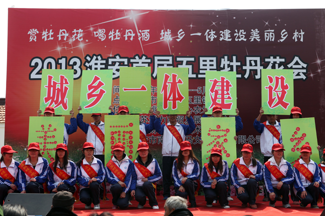 四月的五里桃园,春光明媚,万紫千红,满园盛开的油菜花,舞动了春天的阳光;春天的开心农场,爱满内外,旋律灵动,迎风摇曳的牡丹,传递着爱心与服务。4月21日,2013首届五里牡丹花会在淮阴区五里镇桃花源开心农场拉开序幕。学院党委副书记刘芳,淮安市农委副主任刘正柱,相关职能部门老师以及学院大学生爱心服务社同学参加开幕式。