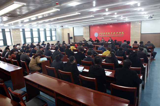 4月23日下午,学院2013年招生宣传工作会议在图书馆第一会议室召开。学院党委书记吴兆方、院长陈光曙出席会议并作重要讲话,党委副书记刘芳,副院长蒋超五,以及各系部相关职能部门负责人、就业与创业指导老师参加会议。会议由副院长蒋超五主持。