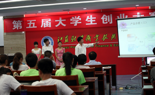 经过两个多小时的激烈角逐,会计系“飞扬团队”、工商管理系“追梦风车”团队并列第一,获得一等奖。据悉,进入前三名的项目将推荐参加“首届中国江苏创新创业大赛”。此次大赛历时三个月,经过系部初赛、学院复赛,最终10个团队入围决赛。参赛队员通过现场阐述创业计划书,展示PPT形式对他们的创业方案进行全方位的介绍。参赛成员饱满的精神风貌、新颖独特创业点子赢得观众对阵阵掌声。