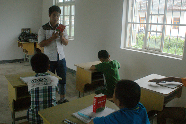 “为了让孩子们的暑假更加的充实,我们根据各自的特长对他们进行辅导,在这个暑期班里,有‘专业’辅导英语的‘土豆姐姐’郭涛、辅导数学的‘小强哥哥’周强、教画画的‘草帽哥哥’李涛,当然还有我这个专管纪律的‘凶巴巴姐姐’。”作为此次村官助理工作组组长、辅导班的“班主任”闫梦认真地介绍着暑期班的情况。