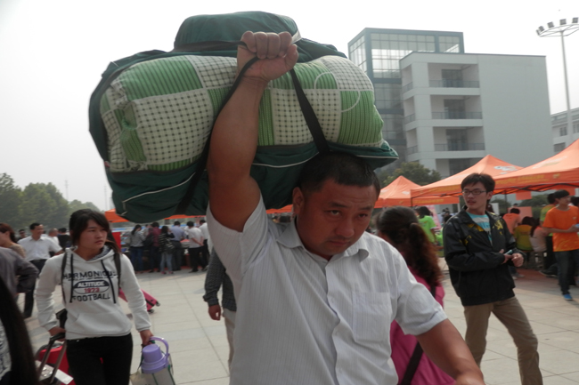 9月7日,是财院新生报道的第一天,尽管学校为迎接新生做了足够的准备,但新生的“亲友团”还是挤满了车站、校园、餐厅和宿舍。似乎他们才是“主角”,而他们的人数也远远超过新生,这些幸福的“90后”大学生们,有的是有父亲或母亲陪同,有的甚至还有孩童和老人,一家人都有过来……