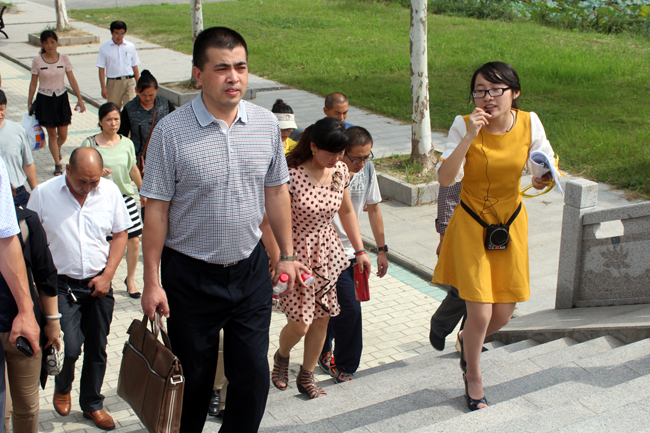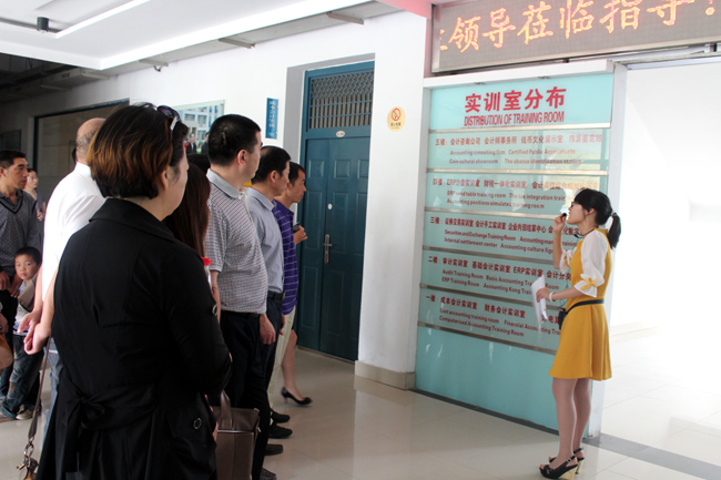 图书馆、各实训基地、素质拓展中心、食堂、大学生创业中心、大学生服务中心、校史陈列馆……家长们边参观边交流,“导游”们边介绍边解答。渐渐接近中午,天气的炎热让汗水“占据”了我们的脸,却消不退家长们对校园的好奇心和对孩子们无私的关爱。