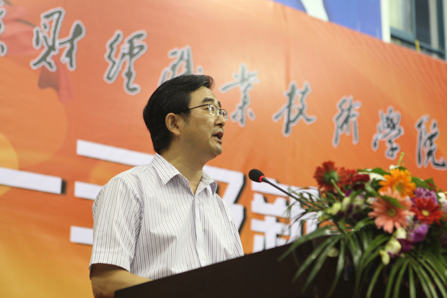 典礼上,学院十位教授向新生代表们赠送书籍,希望他们遨游书海,提升自我。“希望同学们在不断认识自己、提高自己的过程中增长知识、提高技能、陶冶情操、磨练意志,成为既有较高科学文化素质,又有较高职业技能,既有健康体魄,又有健康心智的全面发展的有用之才。”张远录教授在典礼上作为教师代表寄语新生。会计系2013级会审3班的学生吴芸代表3000名新生在典礼上发言。