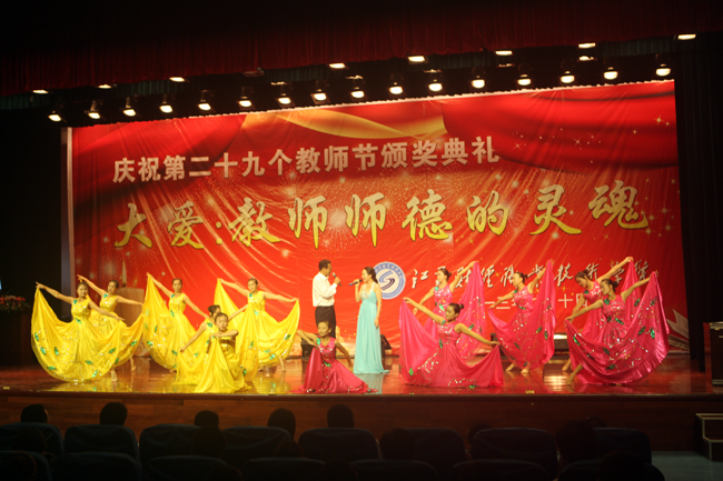 教师是天地间最美的生命。“你是盛开的牡丹,国色天香只为滋润天下,你用一万年最深的牵挂,洒芬芳同醉天涯……”在学院团委副书记朱玛老师带来的《盛开的牡丹》歌舞中,2013年教师节颁奖典礼圆满落幕。