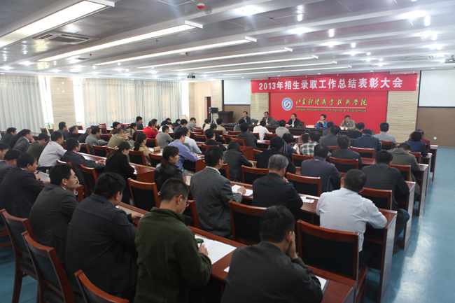 10月23日下午,学院2013年招生录取工作总结表彰大会在图文中心110人会议室隆重召开,学院领导班子成员及全体中层干部和参与招生录取工作的人员参加了会议。大会对2013年招生录取工作进行了全面总结,并对取得显著成绩的的集体和个人进行了表彰。党委书记吴兆方在会上作重要讲话,党委副书记刘芳宣读学院表彰决定,副院长蒋超五代表学院作2013年招生录取工作总结报告,会议由副院长程淮中主持,
