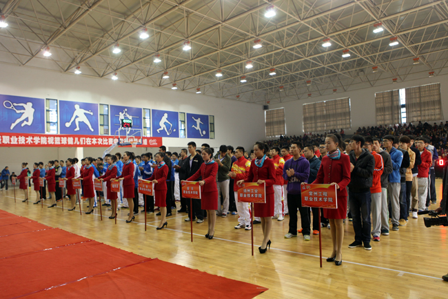 江苏省第十八届运动会淮安市筹委会副主任、淮安市人民政府副市长王红红,江苏省教育厅体卫艺处副处长李海宁,江苏省大体协主席庄惠华,江苏省中体协主席江俊浩,江苏省第十八届运动会淮安市筹委会秘书长、淮安市委机关工委书记张志勇,江苏省第十八届运动会淮安市筹委会副秘书长、淮安市教育局局长朱亚文,江苏省第十八届运动会淮安市筹委会指挥部办赛组组长、淮安市体育局调研员兰国伟,江苏省第十八届运动会高校部男子乙组篮球决赛组委会主任、江苏财经职业技术学院党委书记吴兆方等领导嘉宾以及10支参赛代表队出席开幕式。开幕式由学院副院长蒋超五主持。