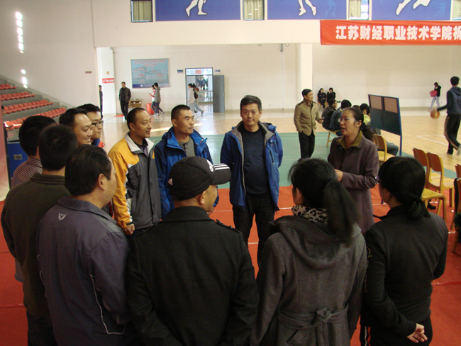 本次比赛由江苏省教育厅、江苏省体育局主办,江苏省学生体协高校工作委员会协办,我院承办。在为期七天的比赛中来自全省高职院校10个篮球代表队,进行28场精彩的比赛。本次大赛是省第十八届运动会赛事之一,也是淮安承办省运会的第一项比赛。周三下午是学院教研活动日,利用这次机会,我们把教研活动放在比赛场地。