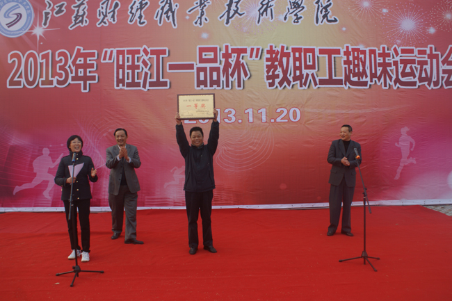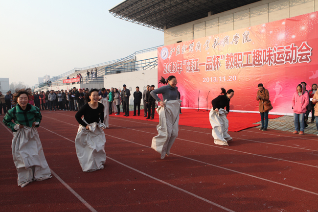 海底传月、地道英雄战、宝贝新娘、袋鼠跳、自行车慢骑、集体跳绳下饺子……这不是正式运动会,也不是玩游戏,而是我院举办的“旺江一品杯”2013年教职工趣味运动会。11月20日早晨8点,来自学院各分工会的近百名教职工齐聚东操场,参加了此次运动会。学院党委副书记刘芳,副院长蒋超五、戴光顺、程淮中出席运动会开幕式。
