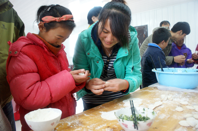 “姐姐,你教我包饺子,过年妈妈回家,我要包给妈妈吃。”“小强哥哥你看,我包的饺子是小鱼形状”、“我包的是皮球形状”,小小的餐桌上,摆放着各种奇形怪状的“饺子”,江苏财经职业技术学院大学生村官助理和留守儿童们开心团聚共享“家宴饺子”。这一次,没有横幅,没有志愿者服装,就像大学生村官助理说的“我们只是回家而已”。