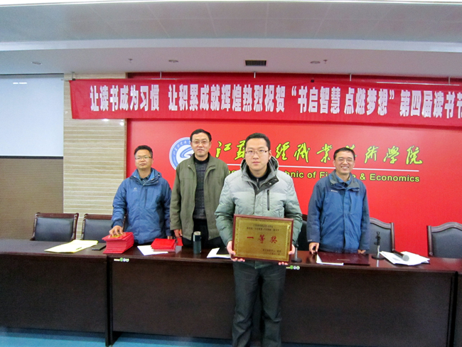 2013年12月26日下午,由图文信息中心、团委、读者协会联合主办,以“书启智慧 点燃梦想”为主题的第四届读书节在图书楼二楼会议室圆满闭幕。图文信息中心主任闾维健、书记高海侠、副主任徐建军以及各系团委书记、获奖同学代表共一百多人参加了闭幕式及表彰大会。