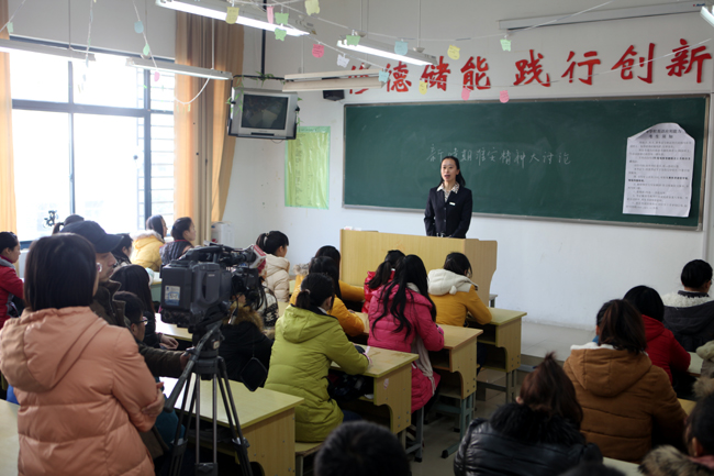 “包容天下,崛起江淮,立足本职,为淮安早日实现更高水平的全面小康培养更多的高技能劳动者。”13会计10班教室里,学生们精神饱满,我院会计系副主任李群在淮安市电视台镜头前铿锵有力地说道。