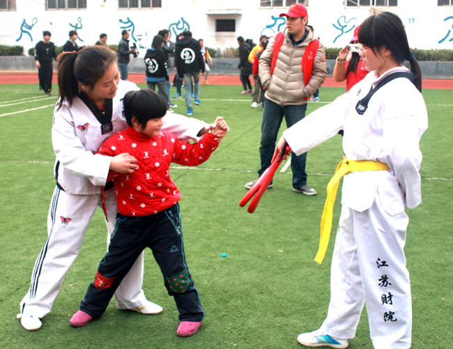 青春活力的清风跆拳道协会表演吸引了全场的目光,一个个高难度动作尽情地展现在这些特殊孩子们的眼前,豪气冲天的双节棍表演、动感十足的街舞表演、炫酷的轮滑表演赢得了阵阵掌声,霸气地鬼步舞表演吸引了很多对舞蹈感兴趣的特校同学,鬼步舞协会的同学耐心地将一个个动作教给他们。活动室里温馨一片,书法协会秀出精美飘逸的书法,吸引了很多小朋友,我院学生手把手教小朋友们写字;心灵手巧的手工艺协会姑娘们把一起制作好的丝网花、手链等礼物送给她们留作纪念,无声世界的孩子们为表谢意,与手工协会的姑娘们拥抱在一起。虽然特校的很多同学只能用神情、手语和我们交流,但是我院社团的同学们还是感受到了特校同学们的那份喜悦。