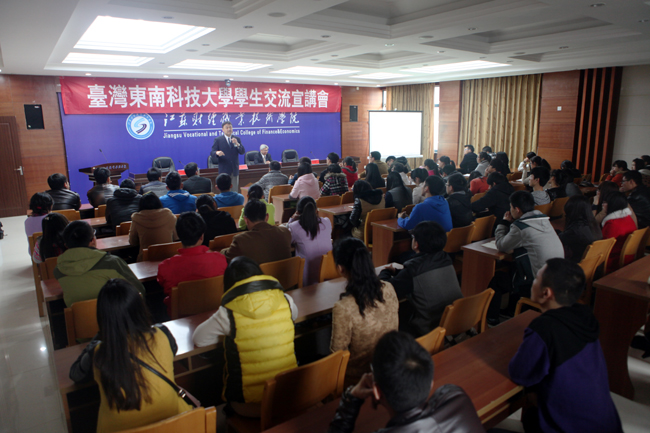 林董事长详细介绍了东南科技大学的发展历史、教育概况和办学绩效,并谈到他对苏北地区的合作渊源与淮安情结,吴书记向来宾介绍了我院的教育教学情况和校际合作交流成果。随后,在310会议室,副院长程淮中与来宾一行开展了围绕两校师生交流主题的座谈会,港澳台办公室、教务处、继续教育与国际交流学院以及相关系部负责人参加座谈。为加深我院学生对东南科技大学的了解,促进两校学生交流,在随后举办的宣讲会上,东南科技大学的董益吾副校长以轻松幽默的方式向我院各系学生代表介绍了台湾风土人情以及学校办学特色,为同学们开启了一段别开生面的台湾学习视觉之旅。