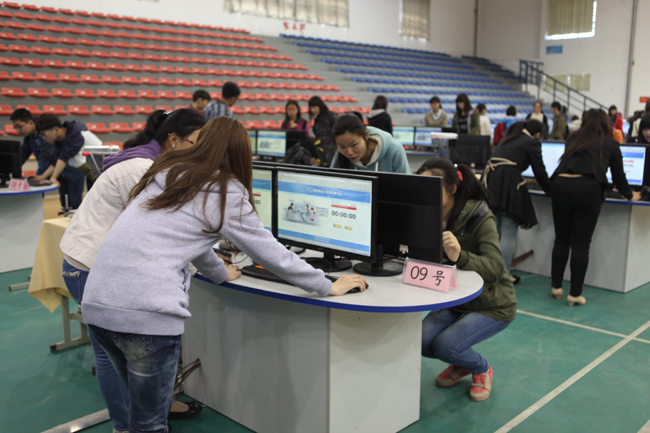 为了保证良好的比赛环境、参赛选手顺利进行比赛,硬件小组指导老师与相关同学对设备进行系统测试。学院礼仪队志愿者进入赛场,进行实战“赛时礼仪训练”,记者团同学也在加紧搜集比赛材料,召开赛前筹备会议,有序分工,积极投入宣传此次赛事的任务中.(记者团 供稿)