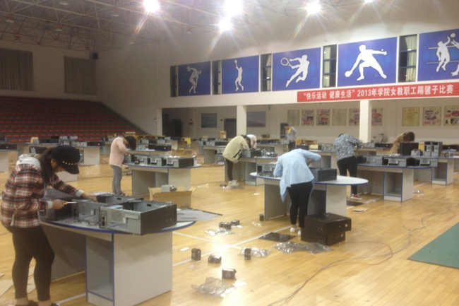 拆卸、组装、调试,从一台机器设备跑到另外一台机器设备,他们马不停蹄;精细,认真,确保各台设备无漏洞,从一枚小小的螺丝钉塑料壳到长长的电源线,他们一丝不苟。4月25日之前的几天,我院志愿者在做江苏省会计技能大赛赛场准备,确保赛事的顺利进行。