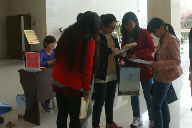 “您好,请问您是哪所学校代表队,请来这边登记一下。”“各位登记入住后调整一下,然后下午5点半在学院图书馆第一会议室参加赛前筹备会议。”“宾馆的接待说这个收据有问题,能帮我解决一下吗?”“稍等,我来协调一下”。志愿者们耐心解说,热情接待参赛报到队伍。“感觉怎么样,晕车吗?来参加比赛紧张吗?”我院接待老师亲切地询问参赛队员,并鼓励参赛队员“认真比赛,获得佳绩。”各代表队入住宾馆后,仔细阅读大赛日程安排手册,以饱满的状态迎接大赛的到来。
