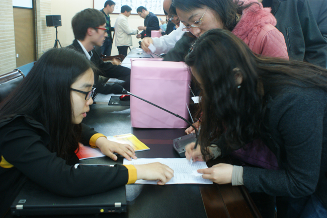 “代码就是学生参赛时登录计算机的号码,不能登录错了,如果错了将登不上系统”,24日下午,为了确保大赛顺利进行,我院相关部门特地在图书馆110人会议室召开了会计技能大赛赛前筹备会议。来自江苏省51支代表队带队老师,领队参加会议。