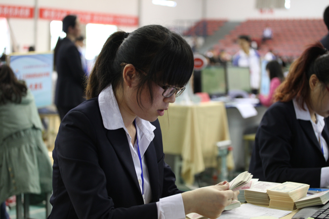 比赛现场参赛学生认真点钞
