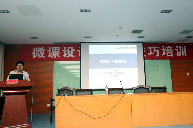 5月28日下午,学院特邀东南大学副教授马涛在图书馆为我院教师进行微课设计与比赛技巧培训。学院教务处副处长王丹主持会议,各系(部)主任、副主任、青年教师100余人参加此次培训。