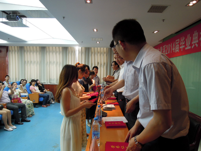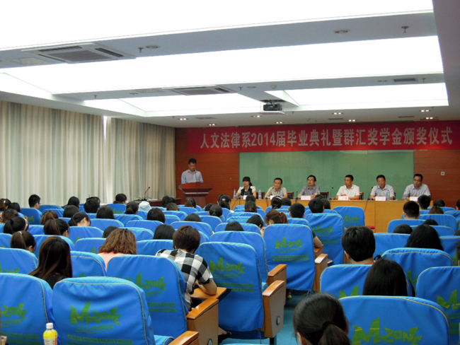 人文法律系主任金涛宣读了《关于表彰2014届优秀毕业生的的决定》及《群汇励志奖学金表彰决定》。各位领导嘉宾向毕业生代表颁发毕业证,向优秀毕业生和群汇励志奖学金获奖者颁发荣誉证书。