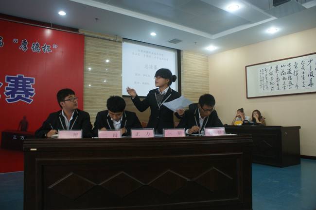 经过几周、数轮的激烈角逐后,学院第二届“厚德杯”大学生辩论赛的总决赛终于拉开帷幕。6月12日下午4:30分,总决赛暨颁奖仪式在图书馆二楼第一会议室如期举行,此前保持不败战绩的“群英队”和“梦之队”进入了总决赛,角逐本届比赛的冠军。学院党委副书记、纪委书记刘芳,学院副院长杜萍以及宣传部、教务处、思政部等部门领导现场观看了比赛。