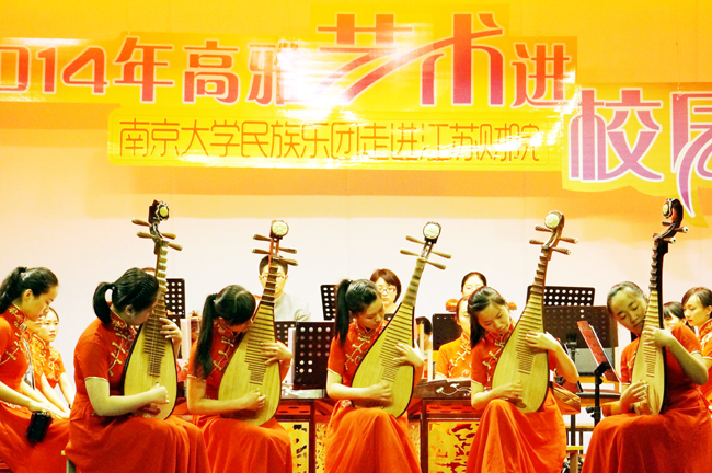 张春副院长首先对南京大学民族乐团的到来表示热烈的欢迎,并表示:“高雅艺术是人类文明发展中积淀的优秀经典,有着深刻的审美内涵。聆听高雅音乐,观摩高雅艺术,是对人格和心灵的净化和升华。本次校园演出,为我院师生搭建了一个接触艺术、亲近艺术、感受艺术的平台,提升了我院学生的艺术素养!”我院将以此为契机,系统规划校园文化活动,同步推进校园文化建设。