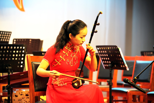 音乐会由中国指挥家学会会员、江苏省音乐家协会理事、中国扬琴学会常务理事、南京大学文化艺术教育中心教授、硕士生导师张静波亲自担任指挥。在张教授的指挥下,一曲愉悦热闹的《喜庆》拉开音乐会帷幕,随后一曲脍炙人口的《茉莉花》让观众感受了我国淳朴的民族生活,琵琶齐奏《送你一支玫瑰花》和二胡齐奏《赛马》曲调悠扬,节奏明快。跌宕起伏、荡气回肠、天籁之音、铿锵有力,每一首音乐都表现出特有的音律,悠远的古筝独奏《雪山春晓》、“热闹非凡”的民族管弦乐合奏《秦淮灯市》、美妙动人的琵琶古筝二重奏经典名曲《春江花月夜》等曲目把音乐会推向了一个又一个高潮。