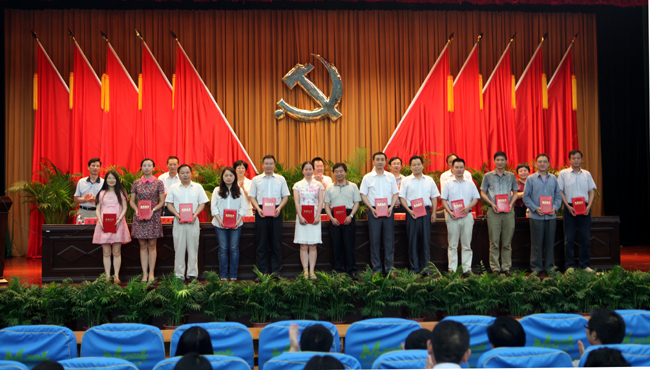 7月1日下午,学院庆祝建党93周年暨“七一”表彰大会在图文信息中心报告厅隆重举行。党委书记韩香云作重要讲话,大会由党委副书记、院长程淮中主持,党委副书记、纪委书记刘芳宣读表彰决定。学院副院长蒋超五、戴光顺、杜萍、张春以及在职教职工党员、离退休党员代表参加大会。会上,3个先进党总支、8个先进党支部、14名优秀党务工作者、24名优秀共产党员、5个最佳党日活动受到学院表彰。