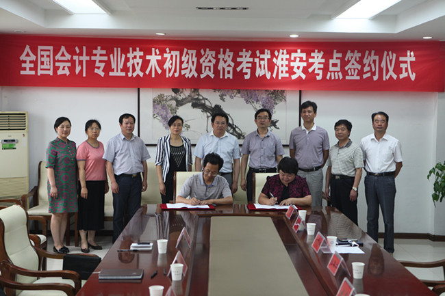 签约仪式上,程院长介绍了学院的基本情况,宋安祥书记介绍了考试考点设立的相关要求及前期准备工作。随后,杜院长与市财政局会计处宋红军处长签署了全国会计专业初级资格无纸化考试淮安考点建设协议书。(教务处供稿)