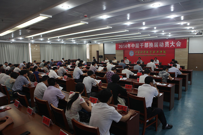 我院现任中层干部于2011年7月聘任上岗,目前任期已满。学院新一届党委根据整体工作安排,决定从7月份开始进行中层干部换届工作。7月1日下午,学院在图文信息中心第一会议室召开中层干部换届工作动员大会。学院党委书记韩香云同志作动员讲话。大会由学院党委副书记、纪委书记刘芳同志主持。