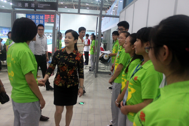 8月25至29日,江苏省第十八届运动会职工部游泳比赛在淮安新体育中心游泳馆举行。根据组委会要求,经严格选拔、多轮培训、周密安排,我院第二批90名志愿者按期返校,准时到岗,全力保障比赛顺利进行。