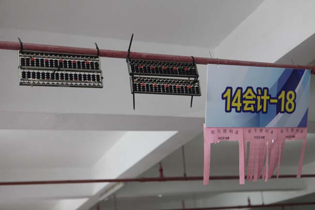 算盘迎新?而且还是实打实的“真家伙”,9月12日,图书馆地下车库迎新的队伍里,我校会计学院的迎新方式可谓是让新生“方便”了一把。“我来到迎新地点,一眼就看到了一排算盘,我想那肯定是会计学院了。”14级新生边说边激动地指向会计学院迎新地点。