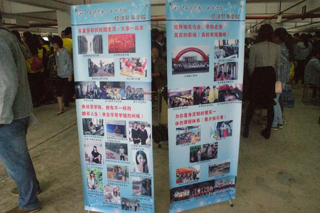 不仅如此,经济贸易学院的“学院迎新指南”展板,让新生更快了解经济贸易学院各个方面的信息, “厚德崇商,经贸俊男,实力ko高富帅”、“来经贸学院,自己赚钱上大学,”经贸学院的横幅更是诙谐幽默。汽车技术服务与营销专业则是拿出了新生家长关注的学生就业分析统计情况表。各个学院用自己独特的迎新方式,让新生更快融入大集体以及小团体。(记者团 供稿)