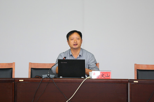 时文山应邀作了题为《学校国防教育的认识与思考》的专题讲座,详细解读了中国的周边环境形势以及强化国家软实力建设的重要性,介绍了从古到今、从外到中、从上到下国防教育情况,对学校的国防教育提出了自己的认识和思考。时文山强调大学生是整个民族的后备军和希望,大学生要有阳刚之气,要有民族使命感。同时他殷切寄语我校大学生,希望大家多关注国家大事,多学习科学理论;要正确认识国家和政府以及社会的积极发展;敢于在社会、集体中唱响主旋律、传递正能量。
