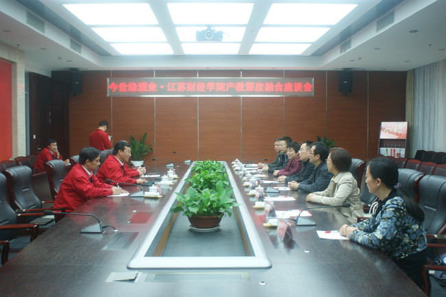 校党委书记韩香云对今世缘过去和今后的发展予以充分肯定,对今世缘的环境面貌、“缘文化”的深厚底蕴以及企业精神予以高度赞扬。会上,韩书记详细介绍了学校整体发展情况,特别是近年来,学校深化校企深度合作,不断推进产教融合,扎实开展社会服务等方面的情况。学校校长程淮中介绍了“今世缘营销班”运行情况以及“今世缘”订单班的设想,双方就校企合作二级学院的办学体制机制创新,人才培养模式改革,现代职教体系建设等方面进行了深入的交流。